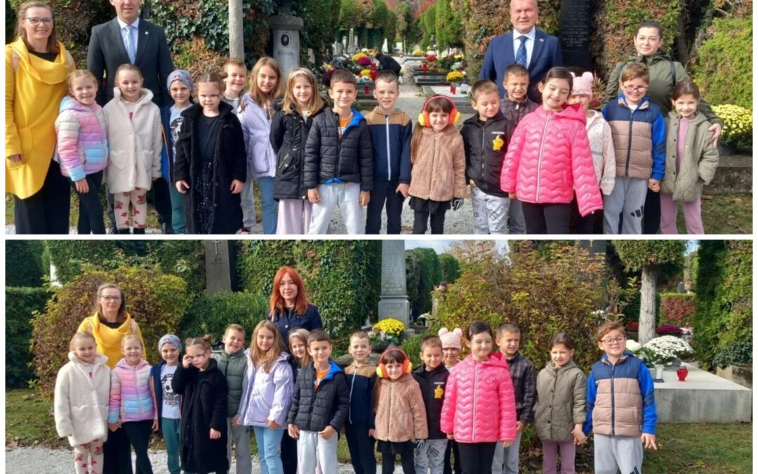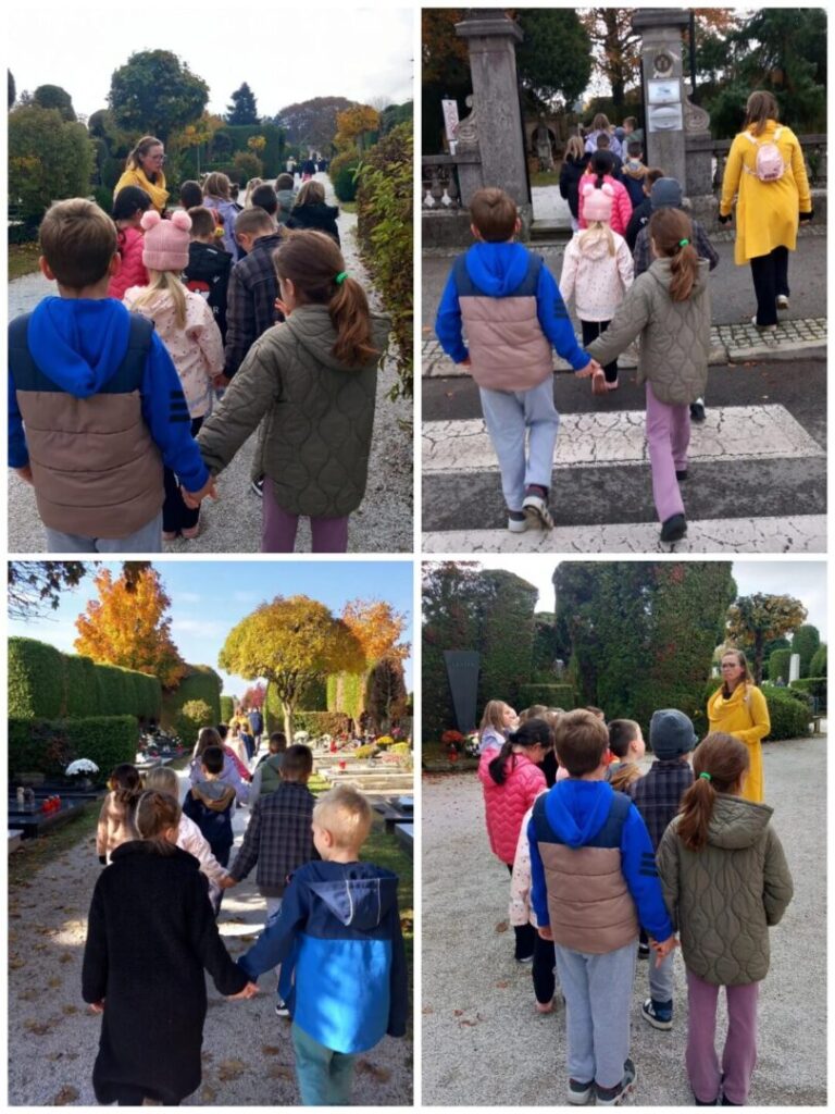Učenici 1.b razreda uz pratnju razrednih učiteljica Lidije Drvarić i Silvije Grđa-Hosni posjetili su, 31. listopada 2025. godine, Varaždinsko groblje.