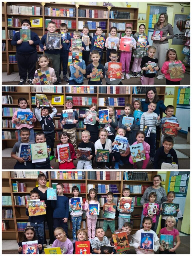 Poslušali su sa zanimanjem priču Željke Vrbančić o buhi Cmoljcu, koji voli dolaziti u knjižnicu i posuđivati i čitati knjige, pod nazivom ‘Cmoljac zna, gdje stanuje knjižnica’ koju im je ispričala školska knjižničarka. Upoznali su se kroz igru s pravilima ponašanja u našoj knjižnici te kako posuditi i vratiti knjige i slikovnice. I ono najvažnije – dobili su članske iskaznice i posudili svoje prve slikovnice!