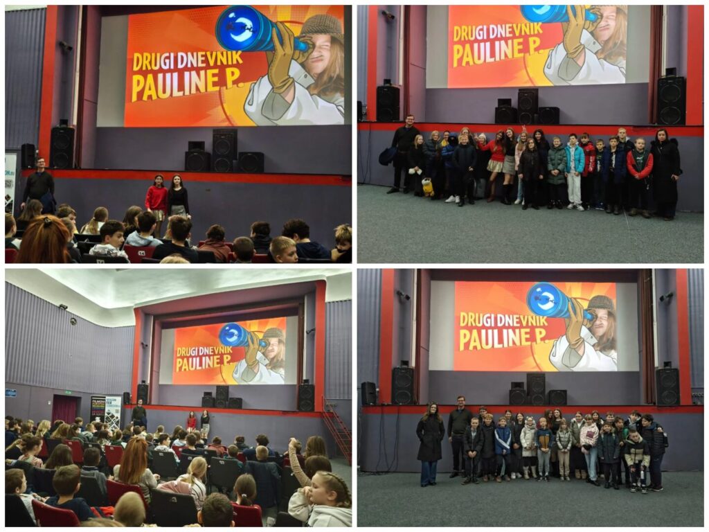 Učenici 4.a i 4.b te učenici 5.a i 5.b su, sa svojim razrednicama i školskom knjižničarkom, prisustvovali kino projekciji filma Drugi dnevnik Pauline P. U Kino Gaj su se uputili u ponedjeljak, 8. prosinca 2025. godine. Besplatnu projekciju filma, uz druženje i fotografiranje s filmskom ekipom, organiziralo je Pučko otvoreno učilište za učenike varaždinskih osnovnih škola.