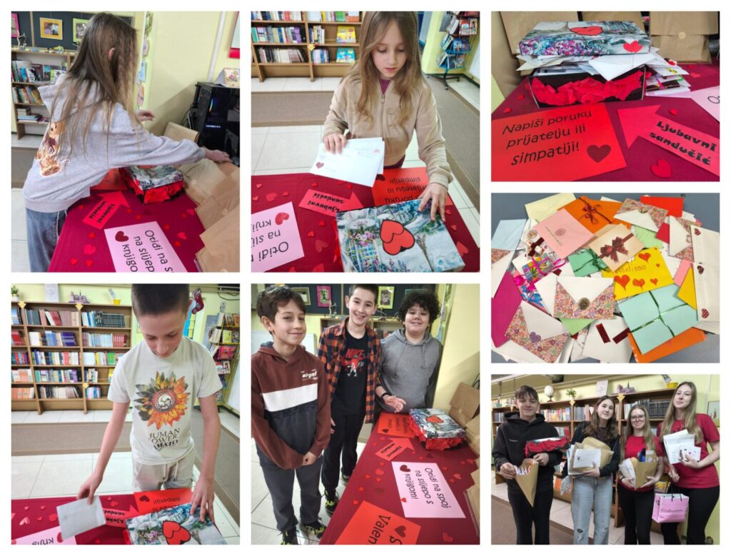 U našoj školskoj knjižnici bio je postavljen ljubavni sandučić u koji su učenici mogli ubaciti pismo ili poruku kojim izražavaju ljubav ili prijateljstvo. To im je ujedno bila i prilika da pokažu koliko im je stalo do prijatelja ili simpatije.  Bili su maštoviti u kreiranju  pisama i sadržaja poruka te su si dali truda da razvesele druge i uljepšaju im dan. Nevjerojatnih 227 pisama, koliko ih je ukupno prikupljeno, podijeljena su u petak uoči Valentinova, šireći radost i pozitivu među učenicima.