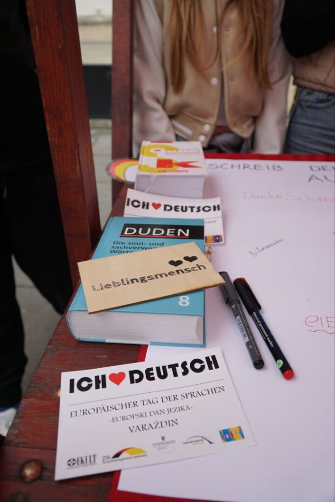U subotu, 27.rujna na Franjevačkom trgu u Varaždinu obilježen je Europski dan jezika koji provodi udruga EKULT u suradnji sa školama kako bi se promovirao njemački jezik. Sudjelovale su i učenice naše škole, Dina Patrčević, Sofija Šambar, Jessica Regja i Mia Herceg u pratnji učiteljice Sare Mlakar.
