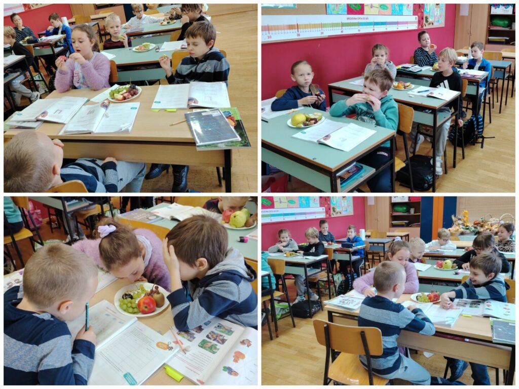 Učenici 2.b razreda su na svojim (ili bakinim i djedovim) vrtovima, voćnjacima, vinogradima, poljima, u šumi i parku ubrali različite jesenske plodove. Uz pomoć roditelja, baka i djedova mijesili su i pekli različita peciva, kolače, kekse i kruh. U školi su poručili recept za slane klipiće, usporedili sa sastojcima i izradom kruha, na satu hrvatskog jezika čitali su pjesmu Što radi pekar te razgovarali o tom zanimanju i njegovoj važnosti, na satu likovne kulture gradbenim i obrisnim crtama i točkama olovkom su crtali građu kruha, njegove različite oblike i dimenzije te su u parovima istraživali jesensko voće – boje, oblike, mirise i okuse (jabuke, šljive, kruške, grožđe, dunje, nar, mandarine…).