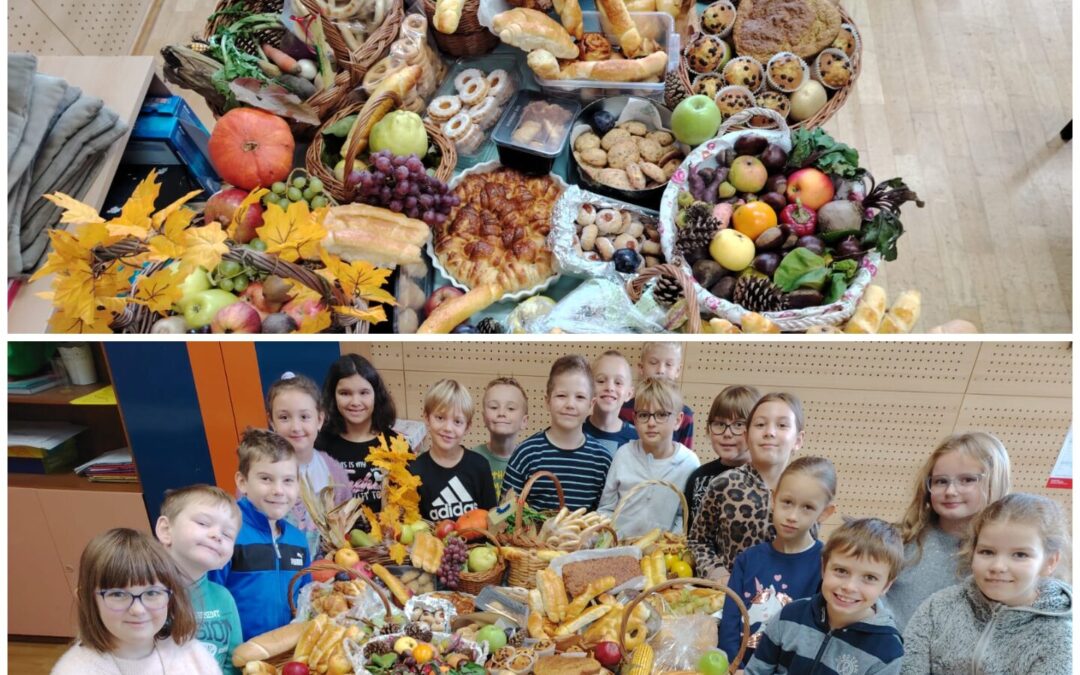 Učenici 2.b razreda su na svojim (ili bakinim i djedovim) vrtovima, voćnjacima, vinogradima, poljima, u šumi i parku ubrali različite jesenske plodove. Uz pomoć roditelja, baka i djedova mijesili su i pekli različita peciva, kolače, kekse i kruh. U školi su poručili recept za slane klipiće, usporedili sa sastojcima i izradom kruha, na satu hrvatskog jezika čitali su pjesmu Što radi pekar te razgovarali o tom zanimanju i njegovoj važnosti, na satu likovne kulture gradbenim i obrisnim crtama i točkama olovkom su crtali građu kruha, njegove različite oblike i dimenzije te su u parovima istraživali jesensko voće – boje, oblike, mirise i okuse (jabuke, šljive, kruške, grožđe, dunje, nar, mandarine…).