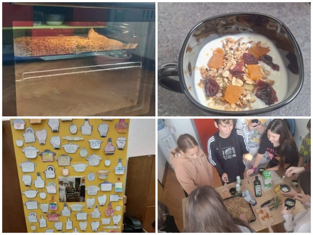 Učenicima koji pohađaju Izvannastavnu aktivnost „Zalogaj znanja“ učiteljica povijesti je pripremila predavanje pod naslovom „Putovanje kroz vrijeme – kako se mijenjala popularnost doručka?“ . Dobili su i zadatak ocjenjivanja obroka iz naše kuhinje tijekom tjedna.